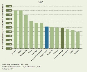 Concentration of arts-centric businesses Leave a Comment / By Roseann Cima / February 13, 2012 The Silicon Valley is just above the national average in number of arts-centric businesses per hundred-thousand residents.